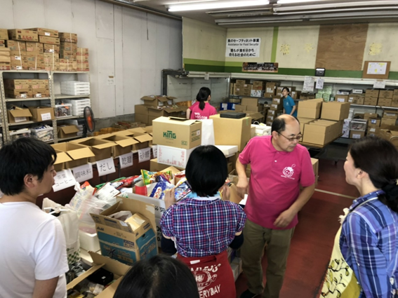 2019年7月3日、認定NPO法人「フードバンク山梨」を訪問しました。「フードバンク山梨」は、第6回エクセレントNPO大賞「課題解決力賞」を受賞されました。今回は、同賞に協賛してくださっている日本生命、野村HD、SCSK、そして共催の毎日新聞社の総勢10名が参加しました。参加者は、「フードバンク山梨」の活動や貧困問題について勉強した後、近くの倉庫で、食品の仕分けと箱詰めのボランティアを体験しました。箱詰めの際に、配達先の家庭のプロフィールを見ながら、それぞれの家庭に合う食糧を詰めてゆきました。各家庭の事情に驚きながら作業をしましたが、時間が経つのも忘れ作業に没頭されていました。皆さん気持ちの良い汗をかいたと思います。